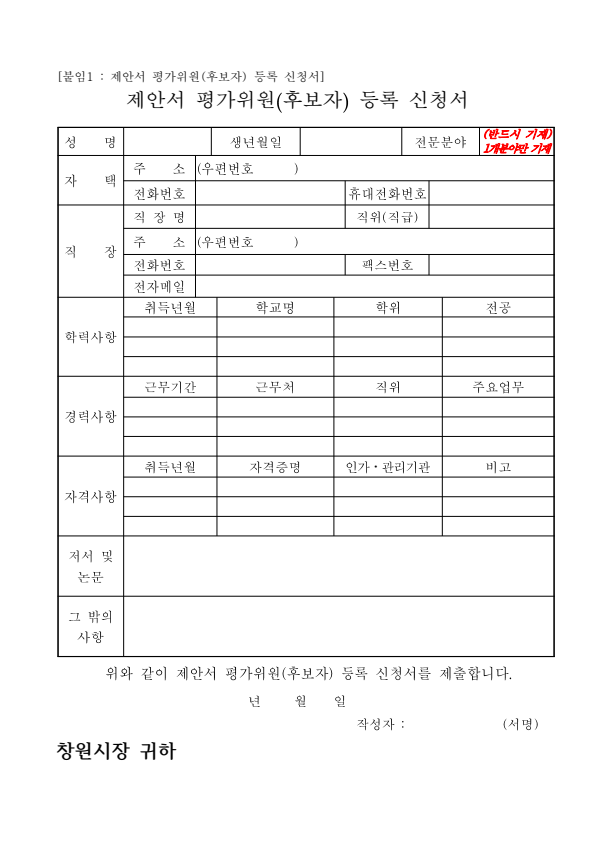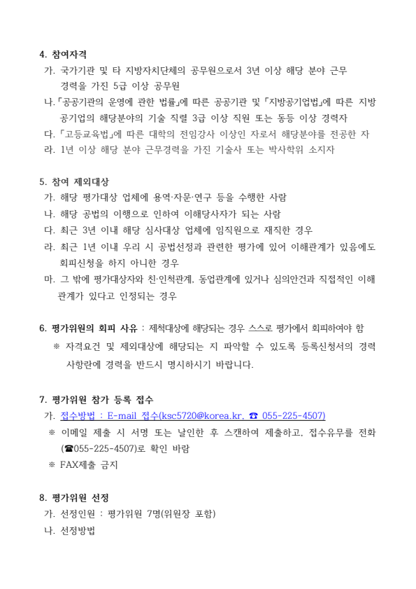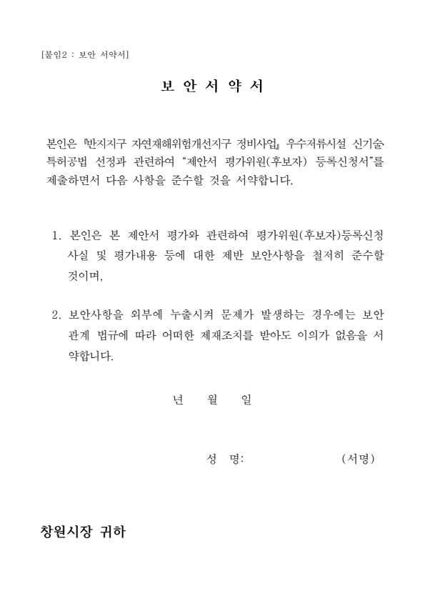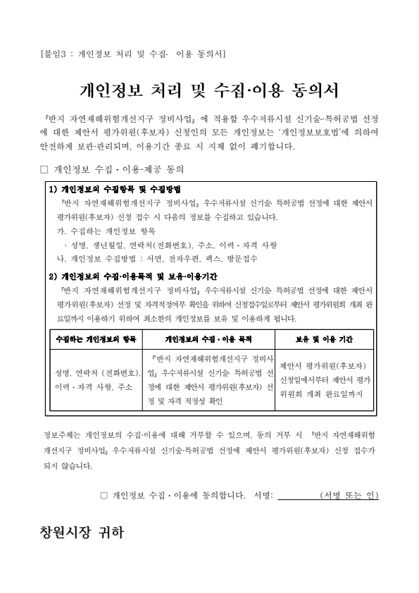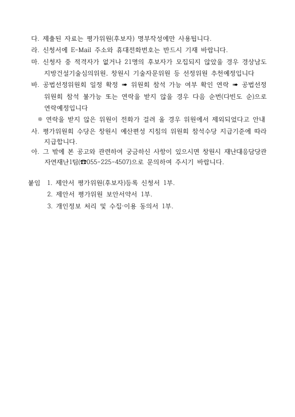 창원시 반지 자연재해위험개선지구 정비사업 신기술 특허・공법을 위한 공법선정위원회 평가위원(후보자)모집