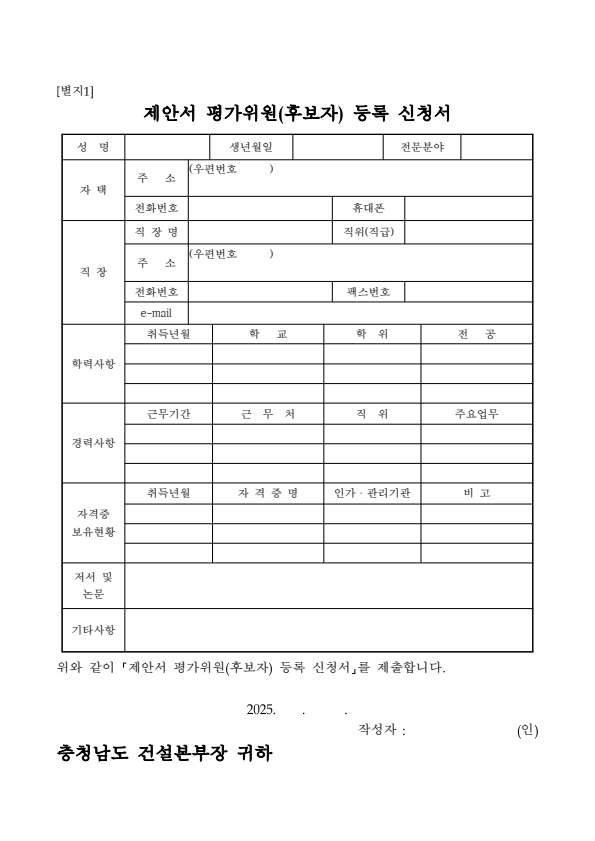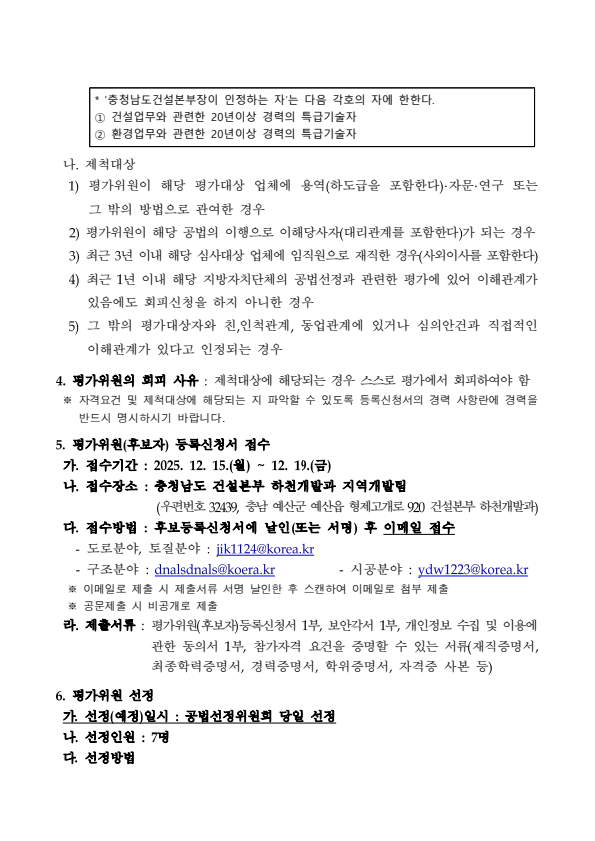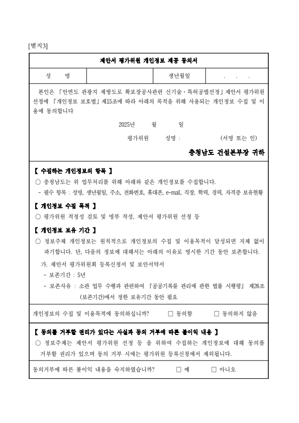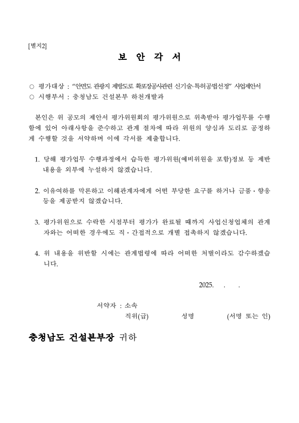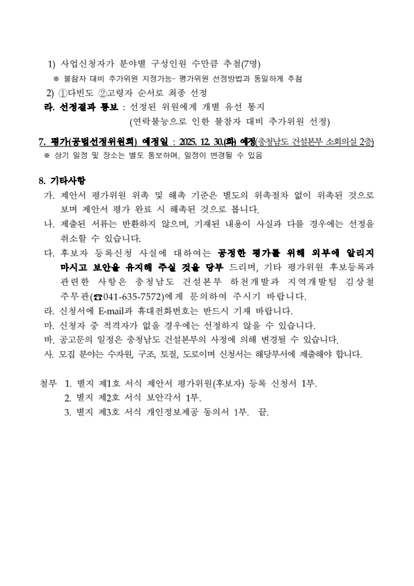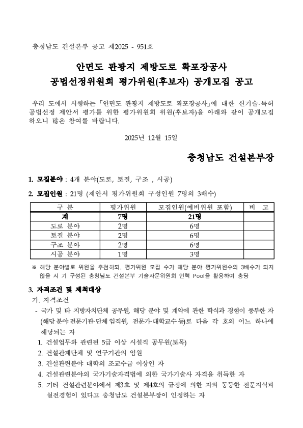 충청남도 안면도 관광지 제방도로 확포장공사 공법선정위원회 평가위원(후보자) 공개모집