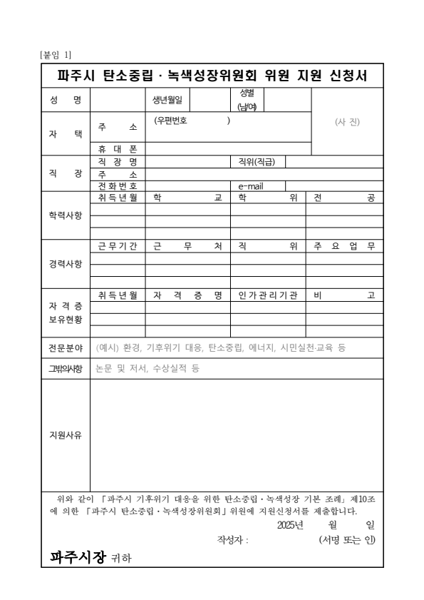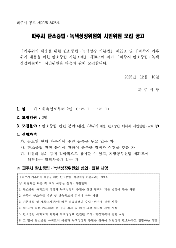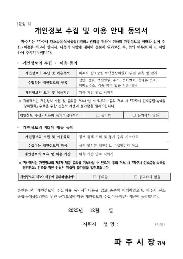 파주시 탄소중립·녹색성장위원회 시민위원 모집