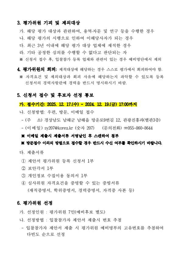 위원풀 구성 요청 기관 이름, 생년월일, 나이, 주소, 이메일, 휴대폰번호, 사진, 경력, 이력, 보유 자격증 중 제공받는 자와 제공협의한 항목 위원풀 구성원에 대한 선발 및 운영 안내 해당 공고의 선발 종료 시까지