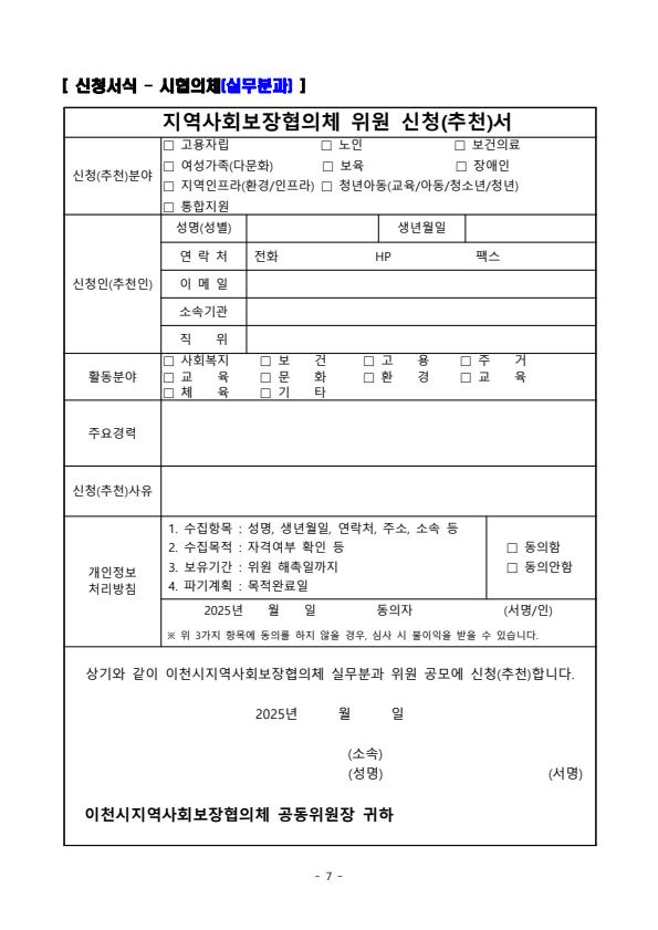 위원풀 구성 요청 기관 이름, 생년월일, 나이, 주소, 이메일, 휴대폰번호, 사진, 경력, 이력, 보유 자격증 중 제공받는 자와 제공협의한 항목 위원풀 구성원에 대한 선발 및 운영 안내 해당 공고의 선발 종료 시까지